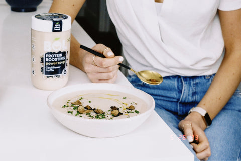 Introducing our NEW Cauliflower Truffle. Luxury meets lunchtime. Heavenly, hearty, and full of health boosting plants, this is a soup to obsess over. A velvety blend of creamy cauliflower, sprinkled with a subtle, smile worthy taste of truffle, garlic, parsley, and black pepper.